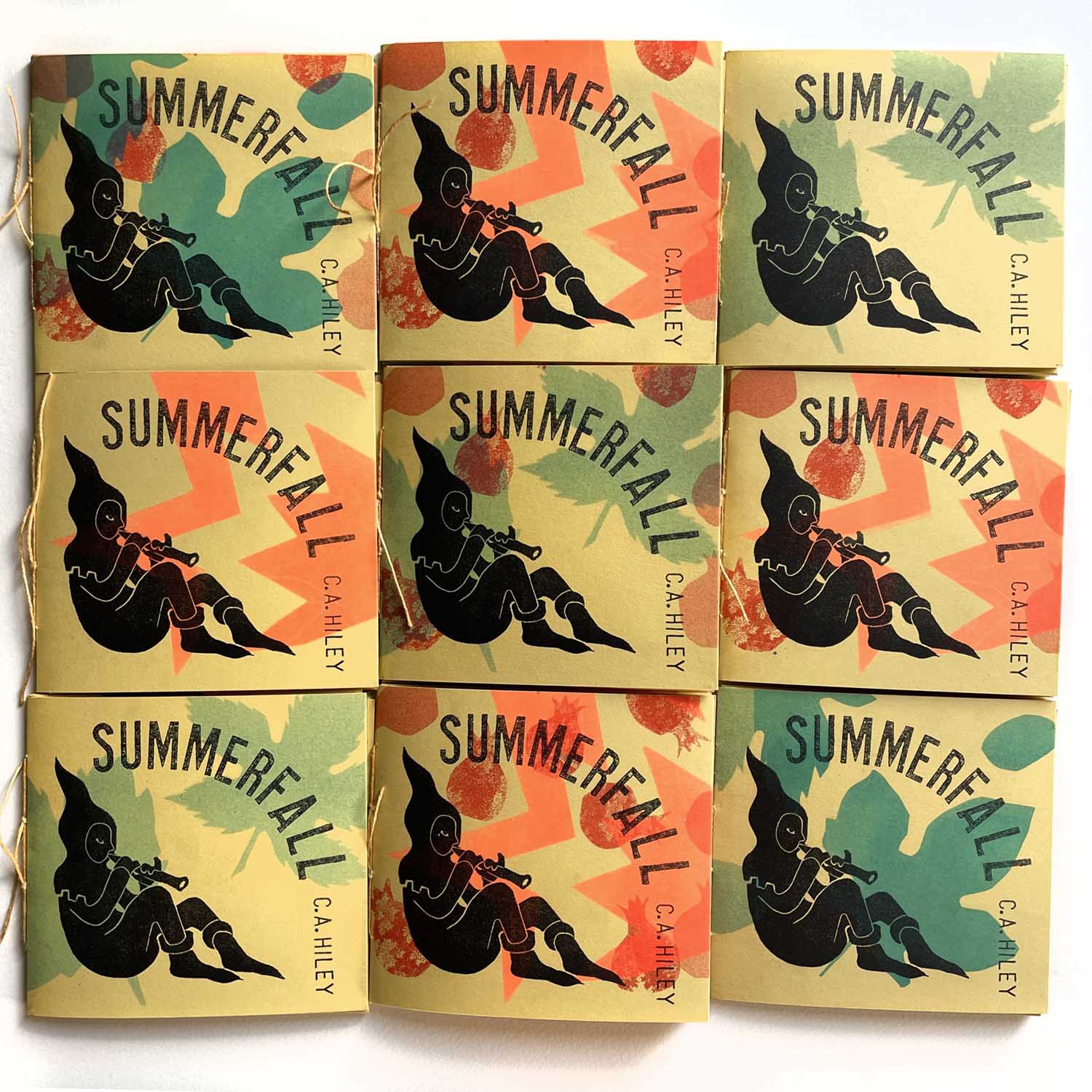 printed in Seafoam Green, Red, Fluorescent Orange and HDBlack on Woodstock Giallo 120 gsm paper.